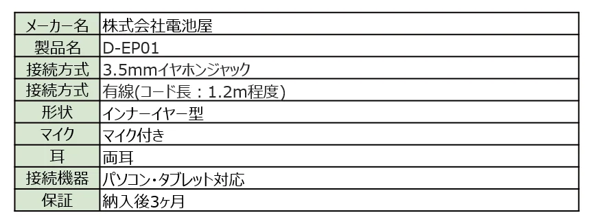 「D-EP01」は、パソコンやタブレットに繋ぐだけですぐに使える、有線タイプのインナーイヤー型イヤホンです。3.5mmジャックを採用しているため、幅広いデバイスに対応。1.2mの使いやすいコード長とマイク機能を備え、WEB会議やオンライン授業にも最適です。