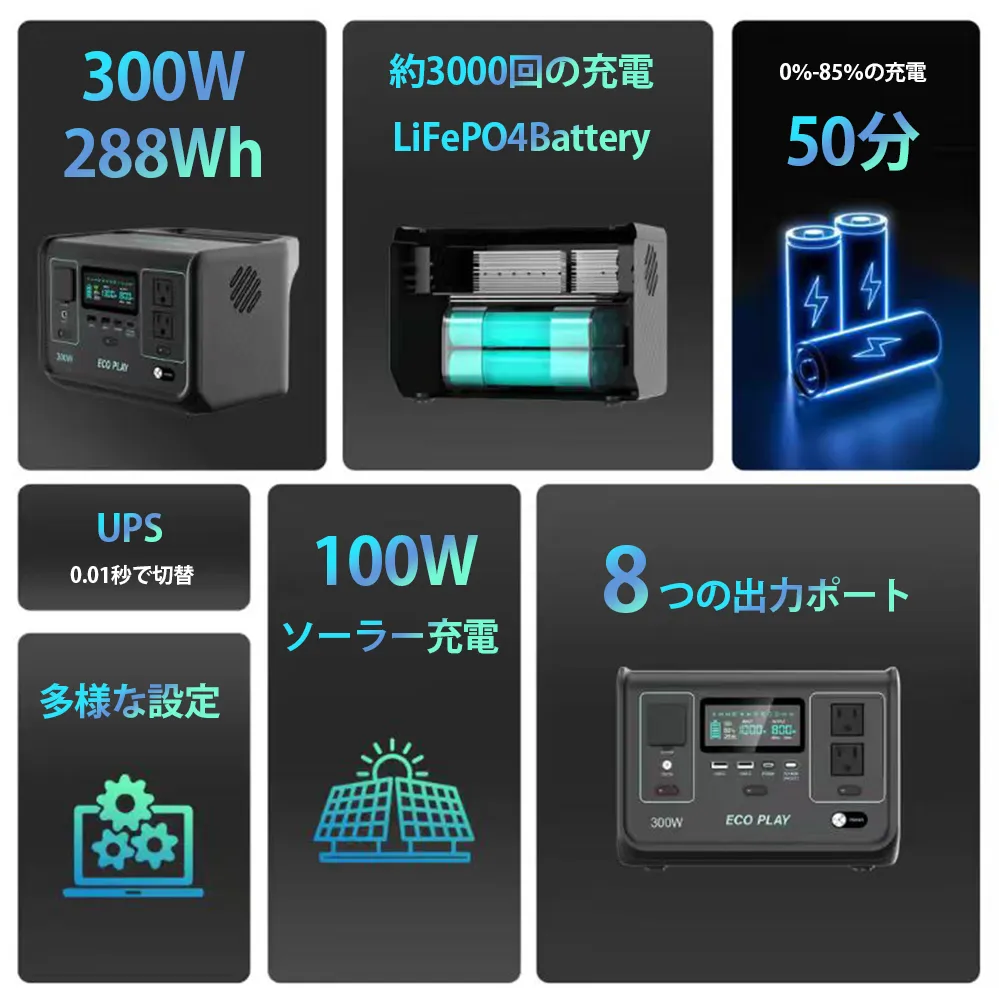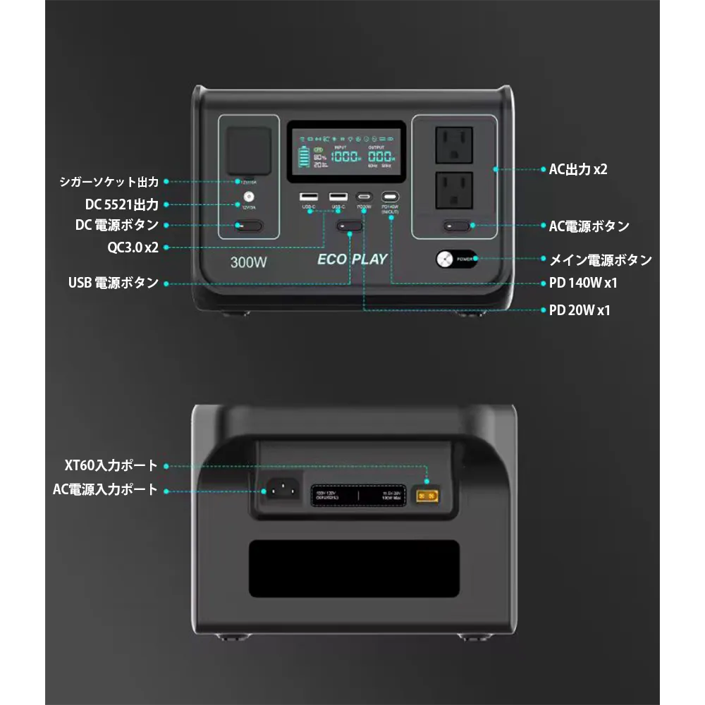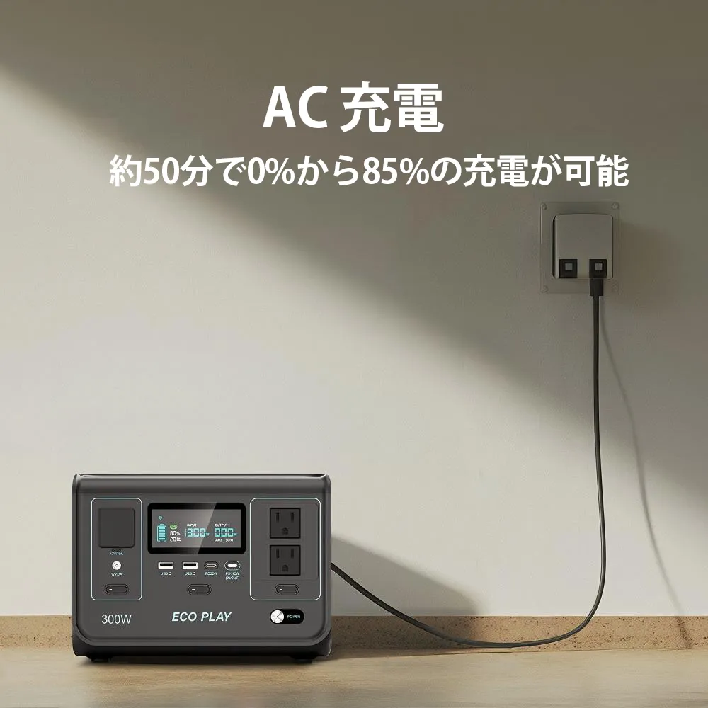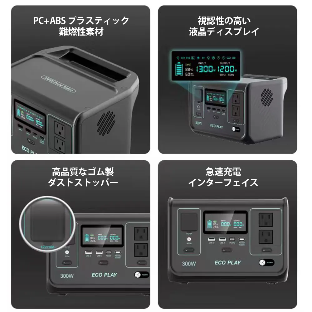 - 常時300WのAC定格出力で、さまざまな電化製品に対応。