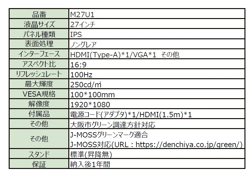 - 接続インターフェースはHDMI(Type-A) × 1、VGA × 1を搭載